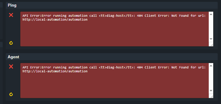 Error message: API Error:Error running automation call diag-host: 404 Client Error: Not Found for url: http://local-automation/automation