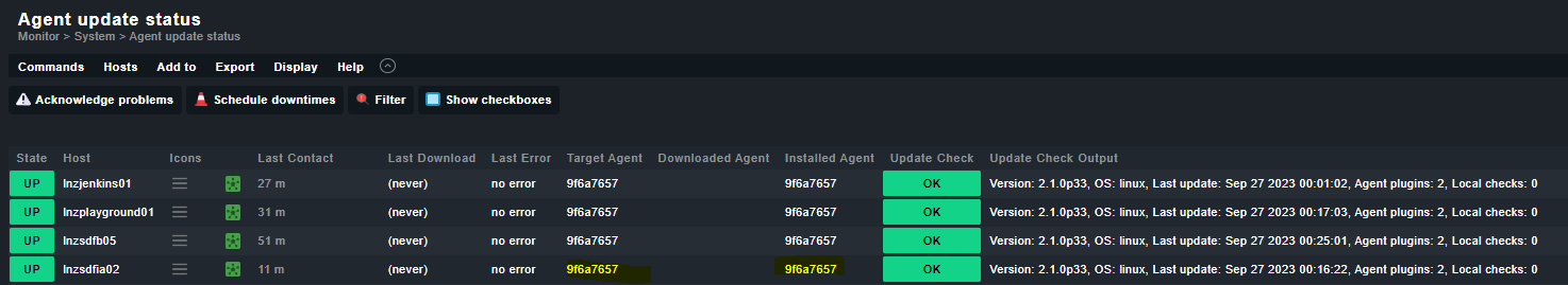 that also doesn’t fit together. The installed agent hash in this picture is completely different than the target hash (the one, the checkmk server would deploy to the node).