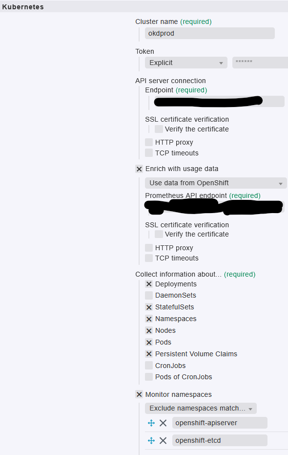 when I configure kubernetes and enter more than one namespace name to exclude I get an argument error