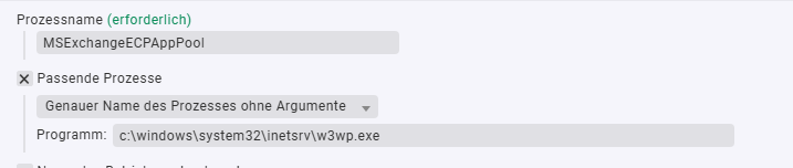 Bei “Passende Prozesse” muss die komplette Command Line ausgewählt werden und nicht nur der Name des Prozesses. Dann kann man in das Feld eine Regex schreiben in welcher genau der entsprechende Pool gefunden wird.