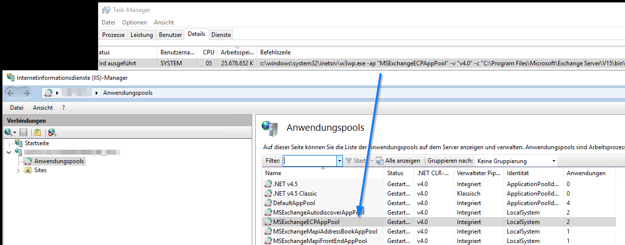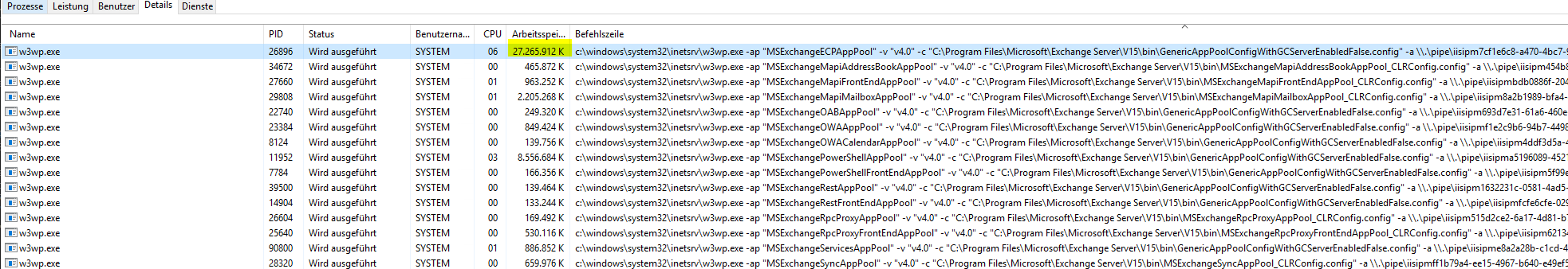 ist es möglich einen einzelnen Anwendungspool (hier vom Exchange Server “MSExchangeECPAppPool“) in seinem RAM Verbrauch zu überwachen und wenn ja, wie?