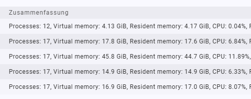 Mit meiner Konfiguration passt weder die Anzahl der Prozesse (279 statt 1) noch die CPU Last und ich bräuchte ja auch den RAM
