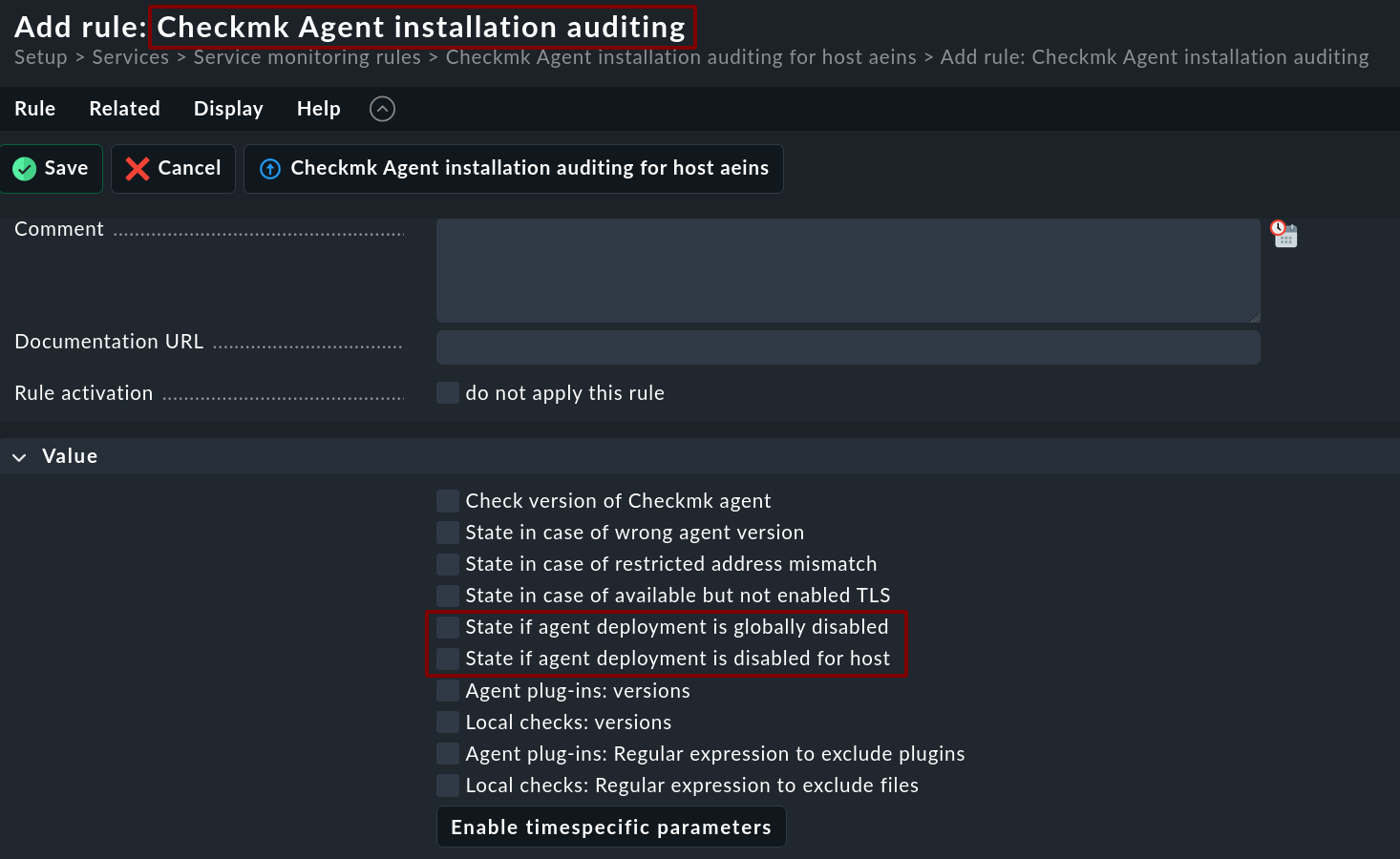 in the rule “checkmk agent installation auditing” you can configure the following rules :