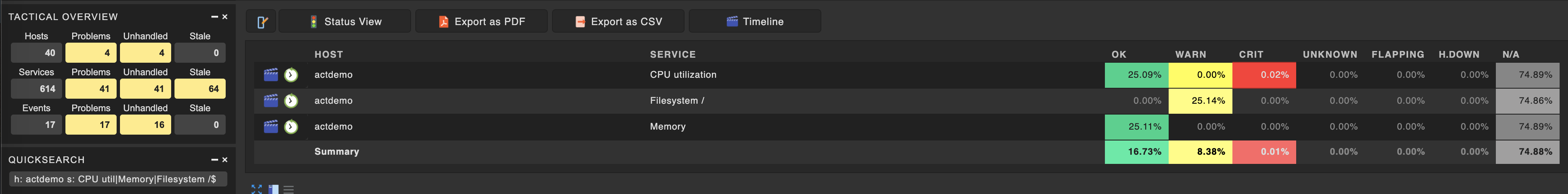 wir haben hier zunehmend das Problem, daß Kunden Verfügbarkeitsreports haben wollen, wobei 3 spezielle Services (CPU, FS, MEMORY) für eine Anzahl Hosts für den letzten Monat täglich aufgeschlüsselt werden soll.