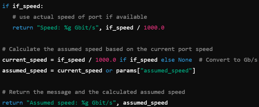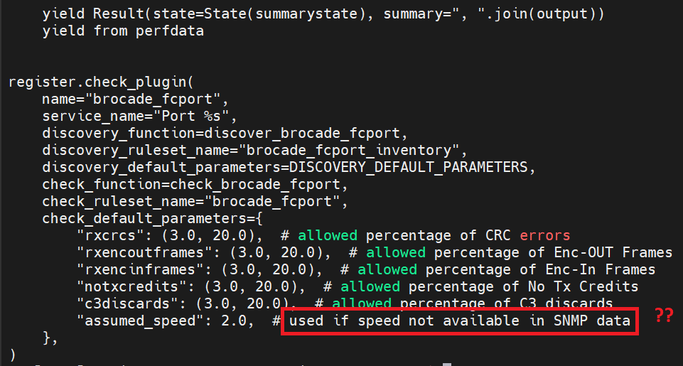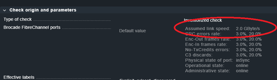 I want the assume speed to be the one that is currently on that port, otherwise, a throughput warn/crit rule will fail (for example). Is not the same 50% of throughput for a 2 Gb link that 50% of a 16 Gb link !! I’m having critical alerts, because the port it’s at 1 Gb speed, when 50% of 16 it’s 8 !!