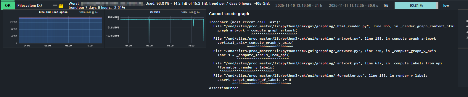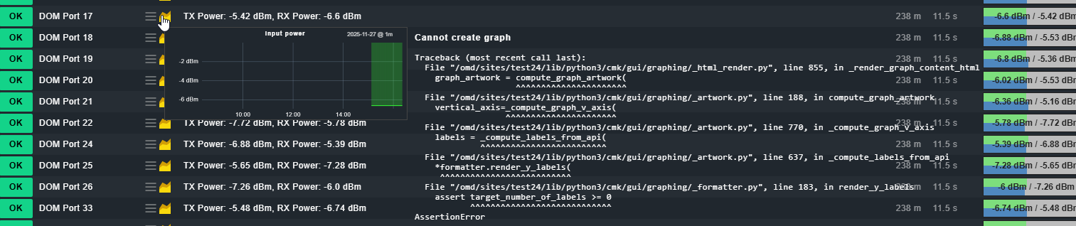 nach einem Update von Checkmk 2.3 auf 2.4 haben wir ein Problem mit der Graph-Vorschau einzelner Services. In der Vorschau erscheint bei einigen Metriken die Fehlermeldung: