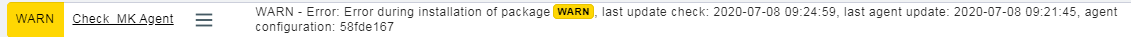 When we look in checkmk server at the host Check_MK Agent check we see a warning