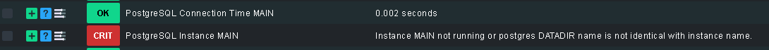 No error other than detecting a non-existent postgreSQL instance and alarming about MAIN not running.