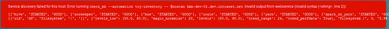 I can see the data coming back from the host when I run cmk -d against the host, but when I try and run a services inventory in the Check_MK GUI I get the error shown in the screenshot, “Service Delivery Failed”