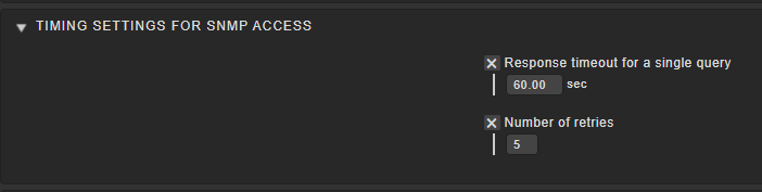 Yes, I actually try to check the time by doing a snmpwalk and it takes over 60 seconds. but when I try to increase this value, in “Time settings for SNMP access”, the maximum is only 60 seconds: