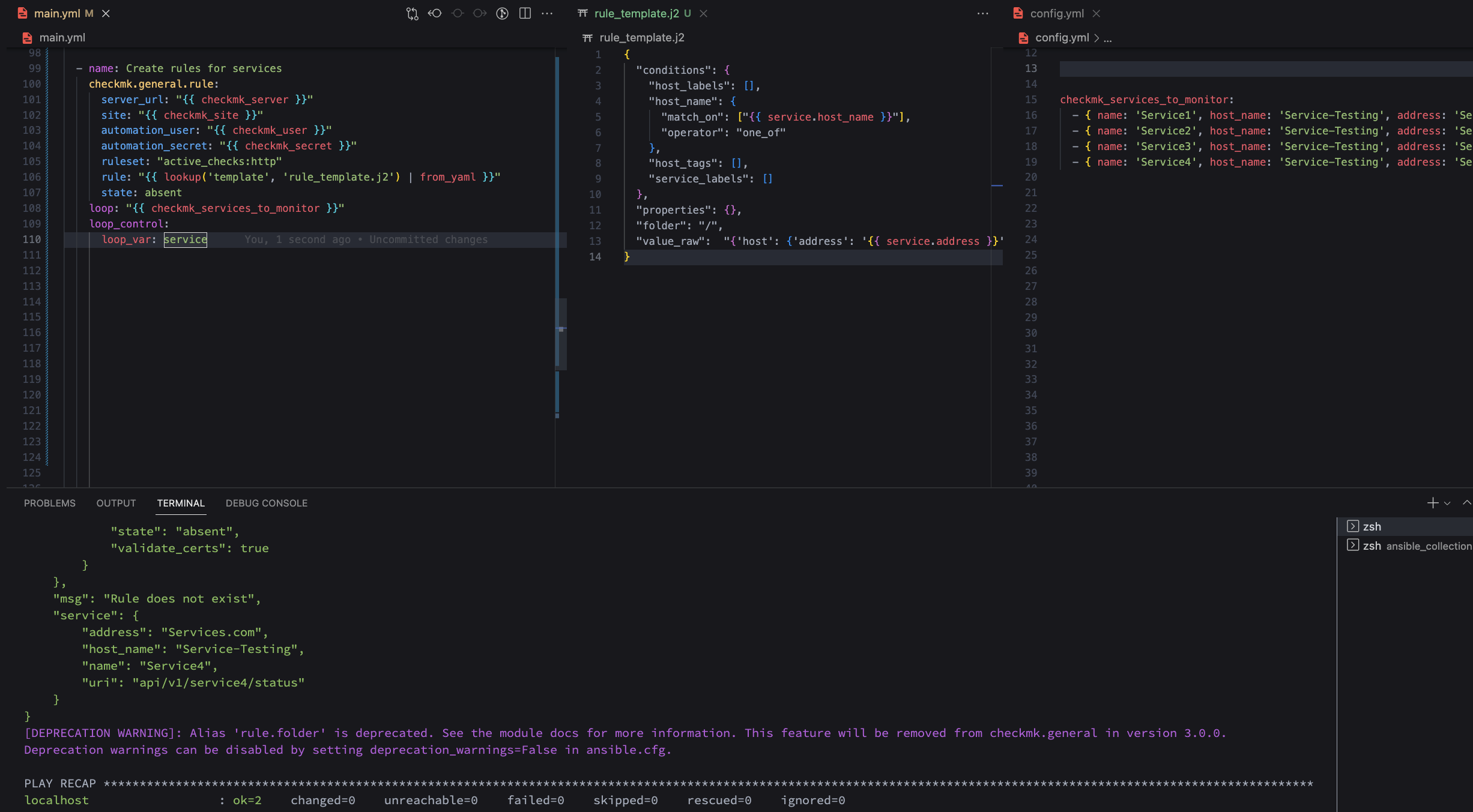 However each time I run the play it will create 4 new HTTP service it wont skip it , and if I try to put state : absent it will say “Rule does not exist” , any ideas what I might change, to delete service I just created and also not create new ones if they already exists.