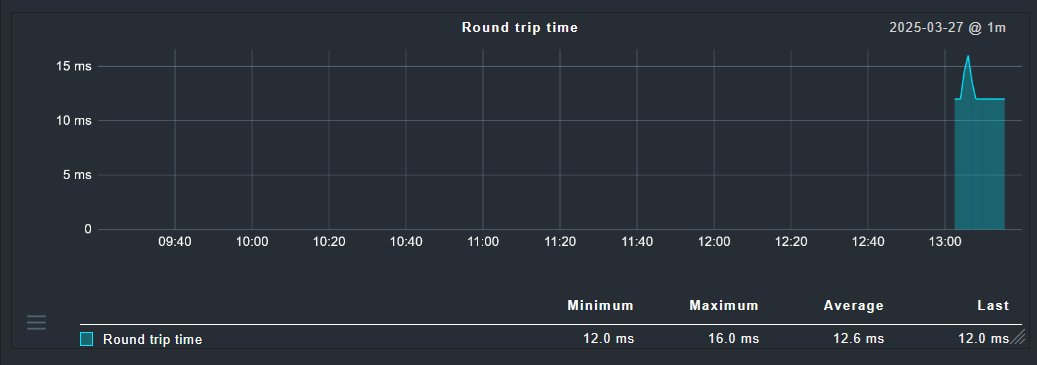 When recording Cisco IP SLAs, we have noticed that during periods where the SLA is unable to complete it’s probes, the data is reported as N/A. The gap at the end of the graph here reported “N/A” for the period in which the SLA was not responding: