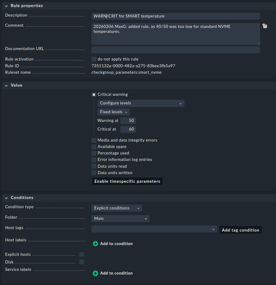This has been asked before for a previous version cmk : How to change degree values of the plugin S.M.A.R.T , but I can’t seem to translate it to 2.4.