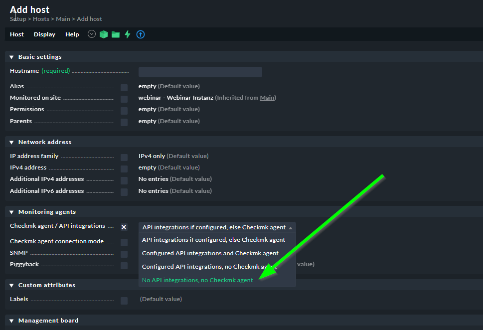 I tried the first step in your answer “No API integrations, no CheckMK agent” but the check is still there. Do I need to delete the host and add it again ?