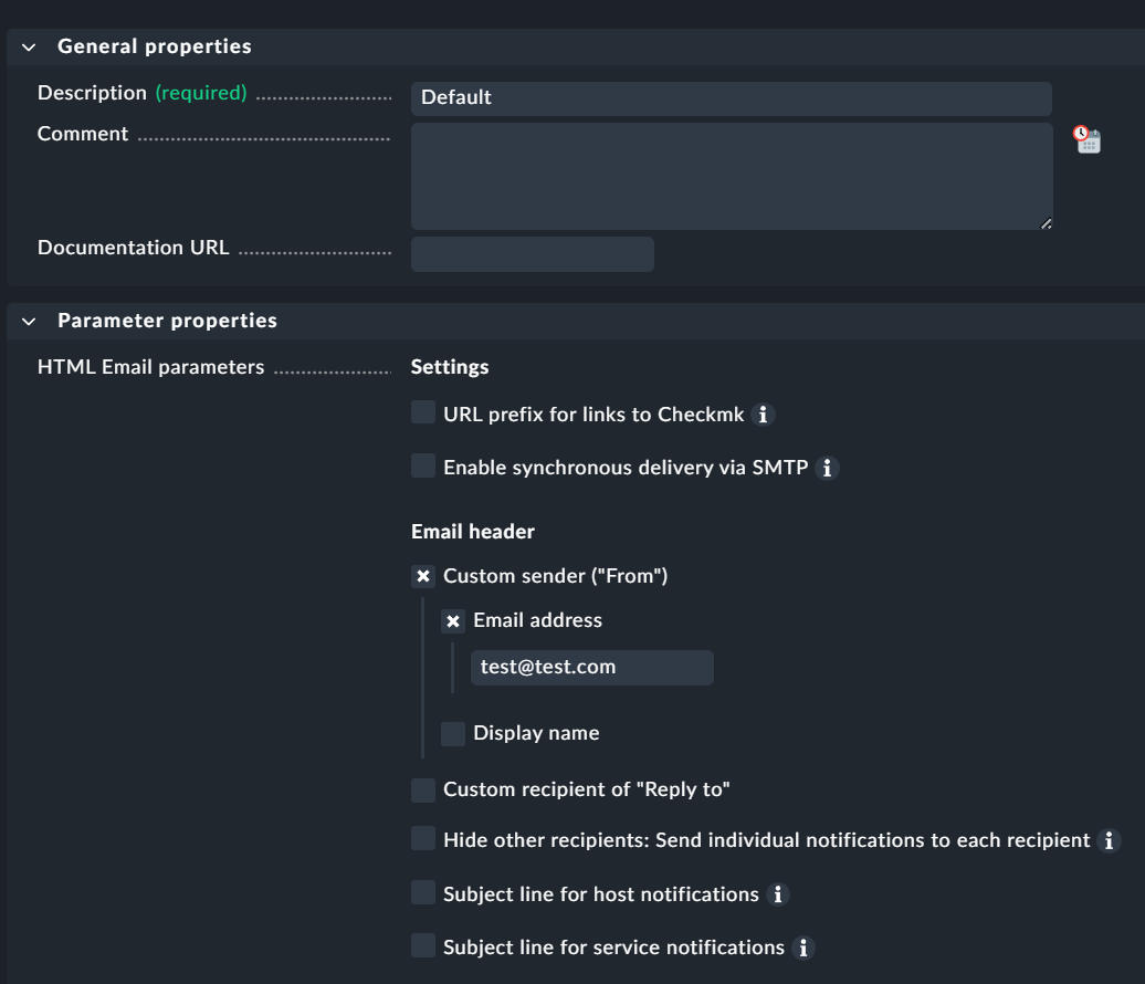 In our standard environment running Checkmk Enterprise Edition 2.4.0p11, I can easily find the fields to define the recipient email (such as “Send as” and other related options) when creating a new notification rule.
