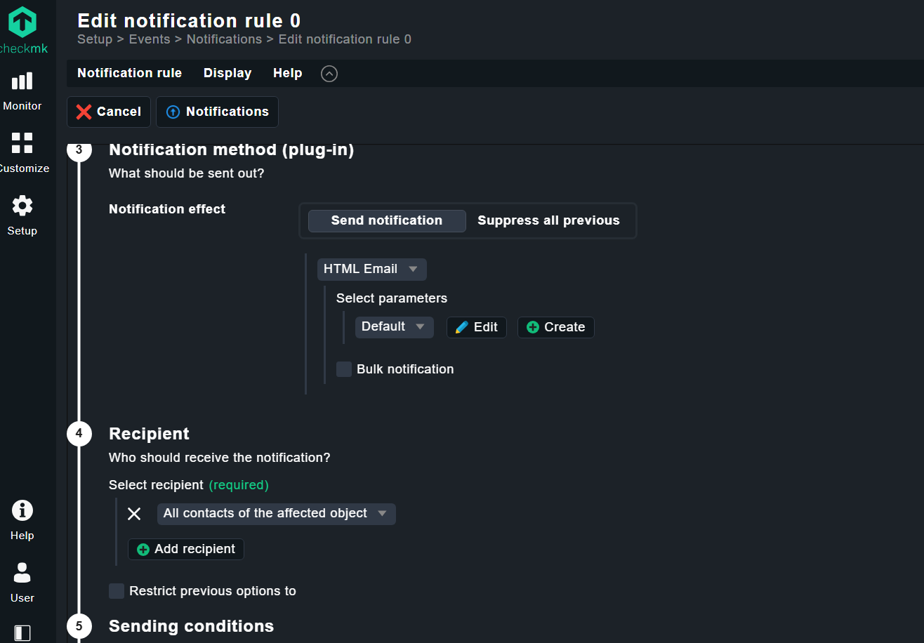 In the previous Checkmk patches, it was easy to create a notification rule and configure options such as “Send as” and other parameters directly when creating a new notification.