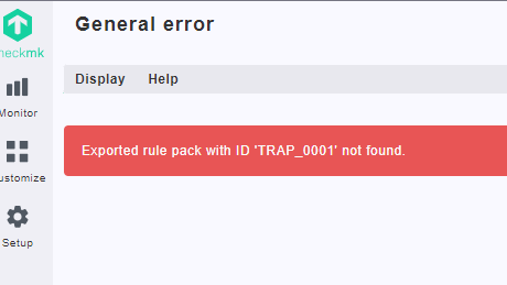 Editing die Datei etc/check_mk/mkeventd.d/wato/rules.mk an deleting exact the string “MkpRulePackProxy(“TRAP_0001”)” - nothing more - nothing less including the comma.