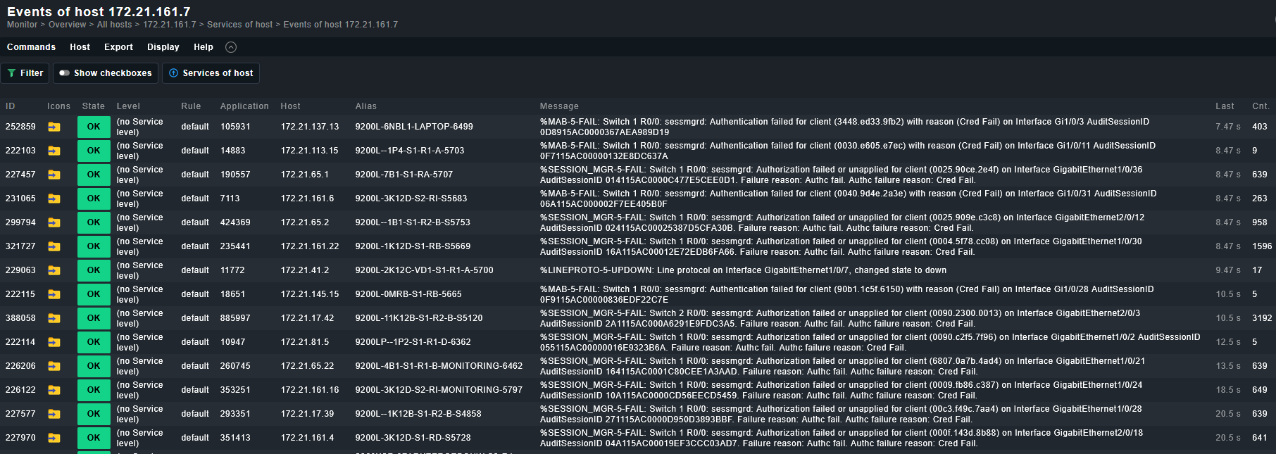 The filter is based on “Host name (exact match)”, but shows events of all other hosts.