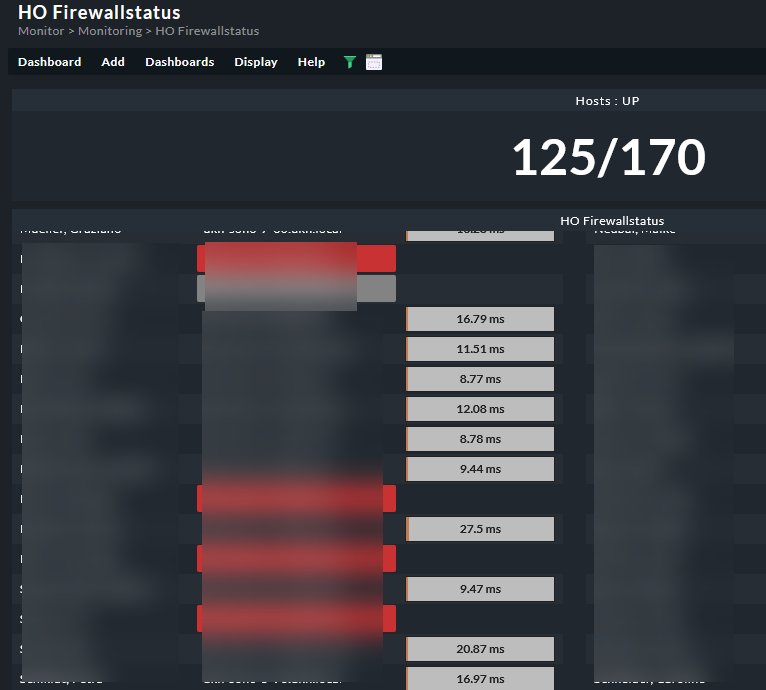 In der “Host overview” oder bei den “Host statistics” auf einem Dashboard werden Hosts in Downtime blau dargestellt. In einer Tableview hingegen in grau.