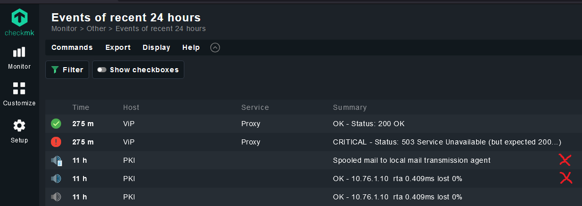 This view shows all host alerts, service alerts and notifications within the last 24 hours.