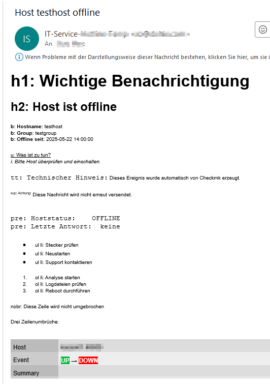 Changes: With this Werk the Insert HTML section between body and table will be sanitized in the usual manner. So certain formatting tags like h1, b, etc. are still possible to use. To be precise: h1, h2, b, tt, i, u, br, nobr, pre, sup, p, li, ul, ol without any additional attributes are allowed.
