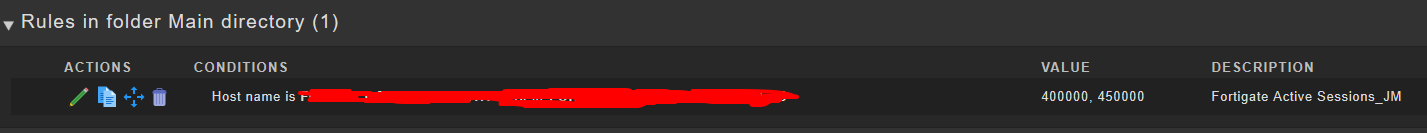 I have monitored a fortigate in two sites with both version 1.6.0p20. The problem is in one of the sites where the sessions service does not seem to respond to a rule that modifies the session threshold.
