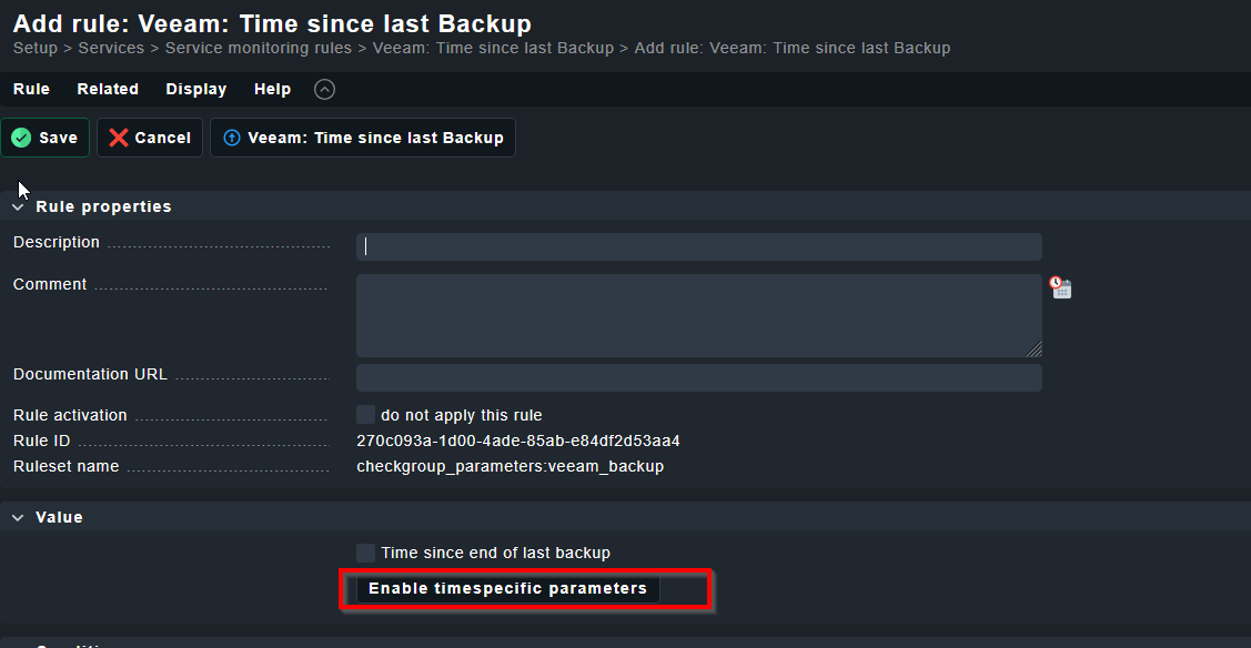 Ich habe mir jetzt eine Timeperiod Sonntag und Montag 00:00 - 24:00 erstellt und diese dann dem Veeam Plugin gegeben und die Werte angepasst. Mal sehen was jetzt am Montag passiert.