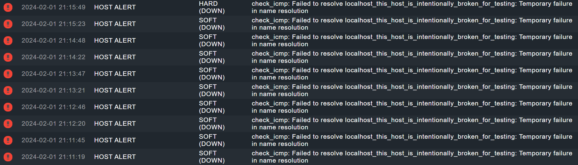 I configured “Delay Host Notifications” to 5 minutes. I’ve noticed that notifications normally trigger after only 3 or 4 minutes (not 5). Worse yet, in a recent instance I observed a notification occur after only 1 minute and 39 seconds!!!