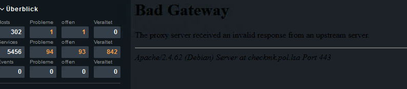 ich habe unter Host-Merkmale mir mehrere Merkmale wie Standort, Raum usw selber hinzugefügt und in einer Übersicht anzeigen lassen z.B. den Standort der Server . Nach dem Update auf 2.4.0p1 steht in der Feld einfach “K A” statt dem Standort. Wenn ich die Merkmale bearbeiten will und speichern will kommt eine Fehlermeldung “Bad Gateway”