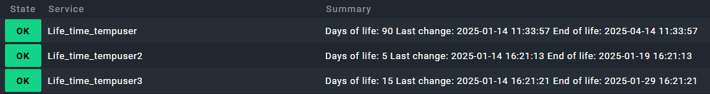 echo "0 Life_time_$user - Days of life: $password_lifetime Last change: $password_last_changed_datetime End of life: $until"