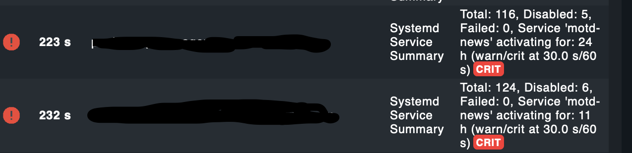 we were getting alert mail for “motd-news” service in critical of “system summary service”