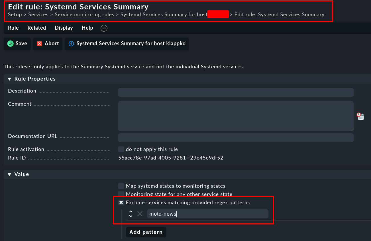 I have created a rule in “service monitoring rules” → systemd service summary , to exclude this service