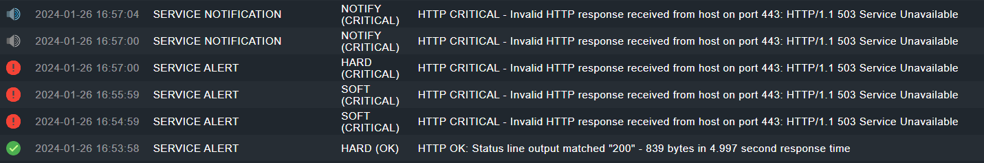 2024-01-29 14:15:00 [7] [notification helper 16890] service "student-20.XXXXX;HTTPS Homepage": next notification in 5 minutes