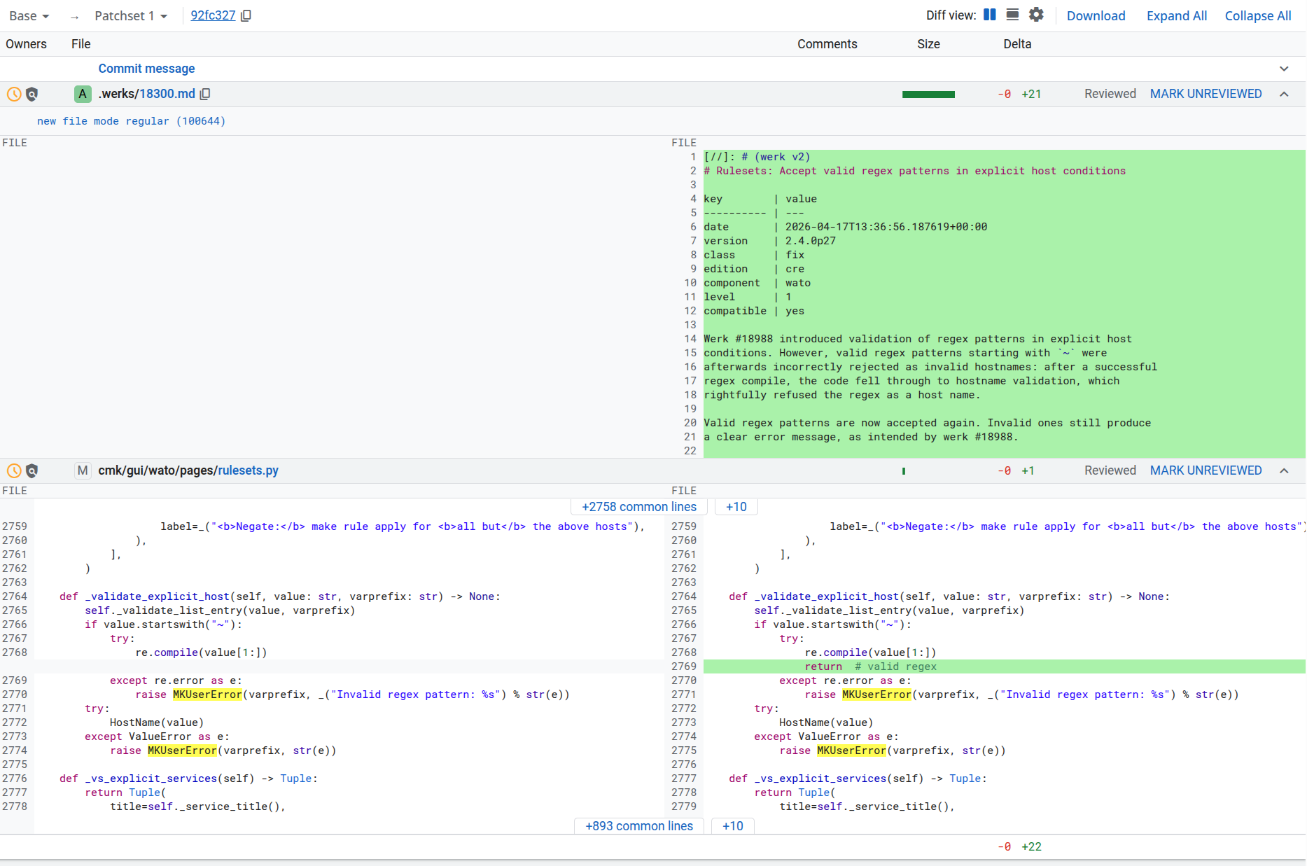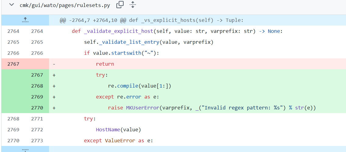 18988 FIX Rulesets: Validate regex pattern in explicit host conditions · Checkmk/checkmk@a1e90d2 · GitHub