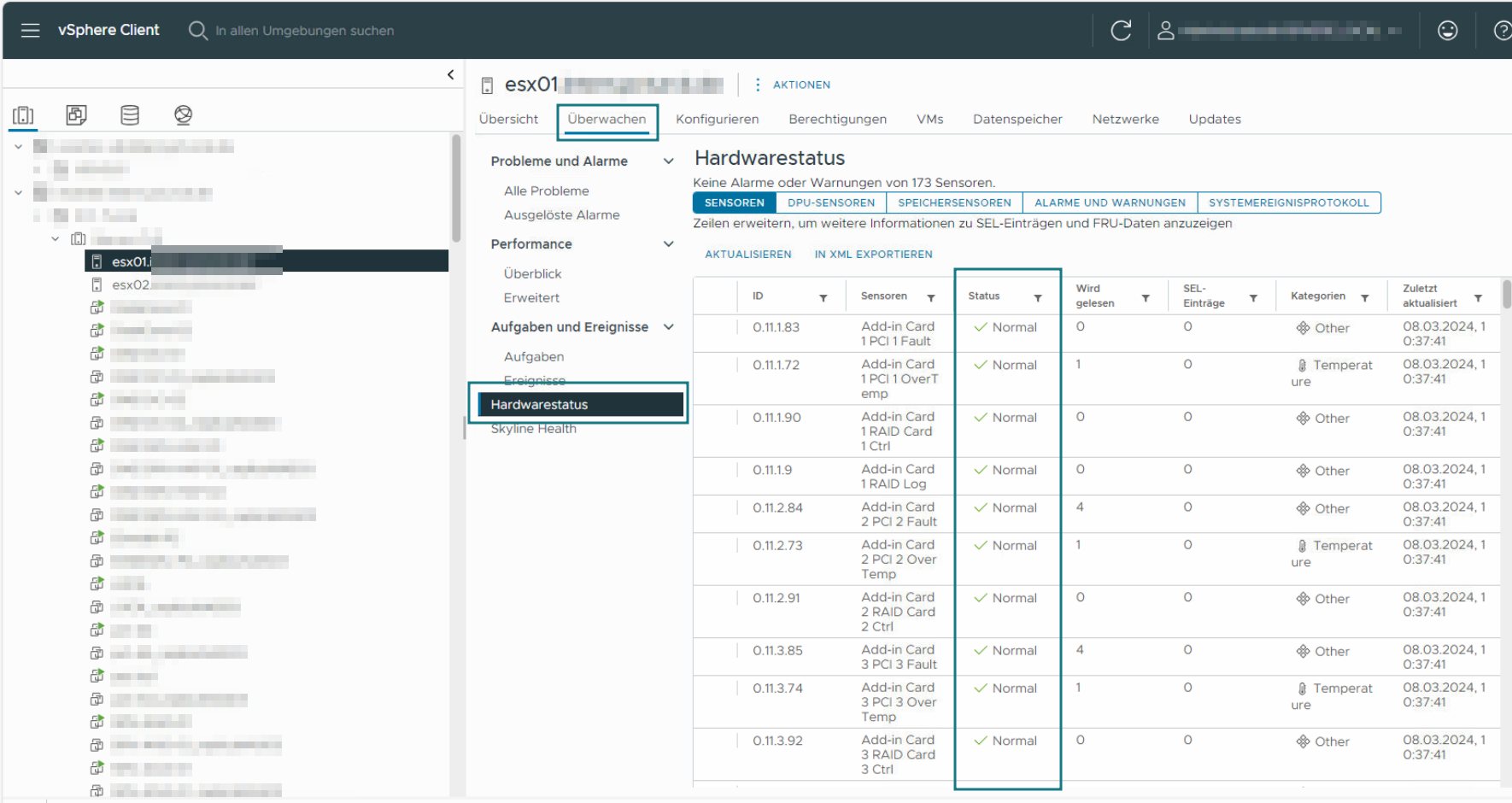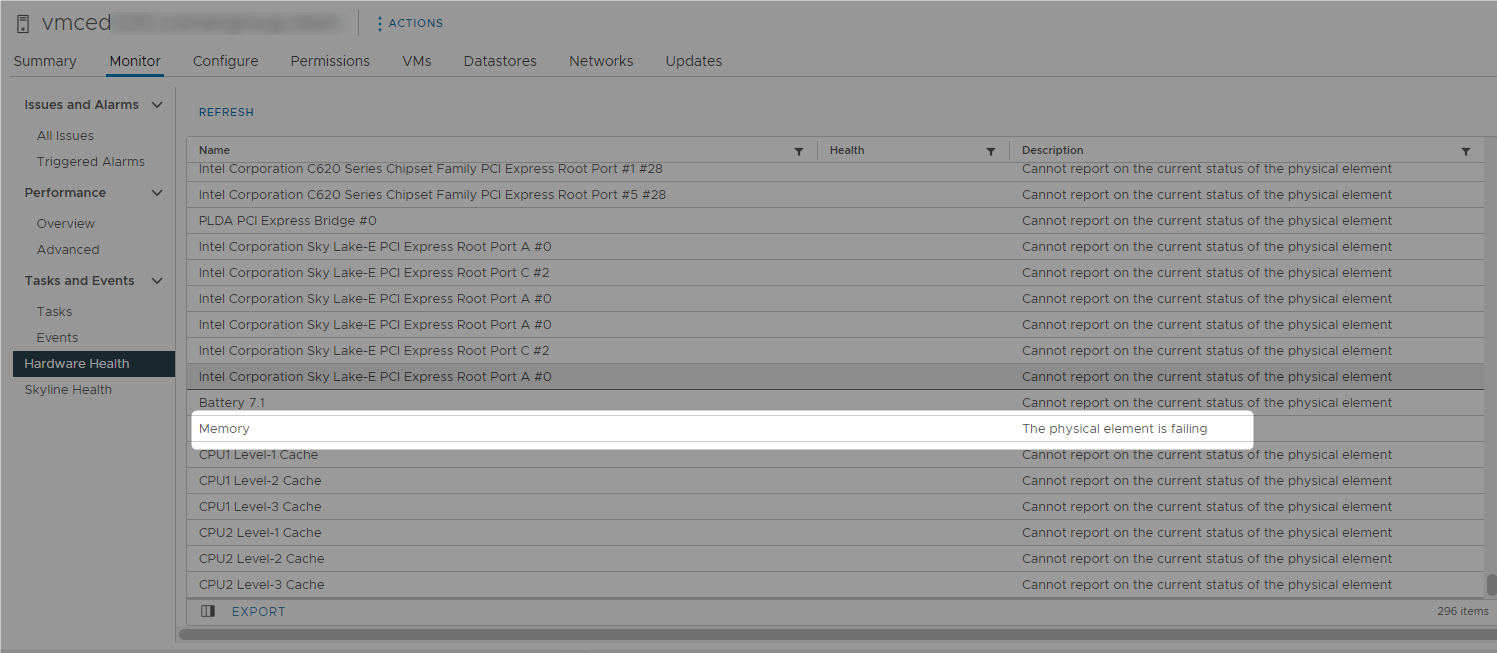 Note: Due to a caching problem on the ESX host system side, this check occasionally reports incorrect sensor data. This may mean that the sensor appears to be stuck in an unhealthy state. You can find more information here: http://kb.vmware.com/selfservice/microsites/search.do?cmd=displayKC&externalId=1037330