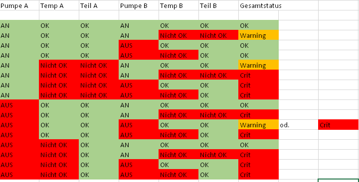 Bei einem einzigen Management könnte man dies über einen explizit für das Gerät erstellten Check lösen. Dieser hat intern die Matrix was ok ist und was nicht und baut daraus ein Gesamtergebnis.