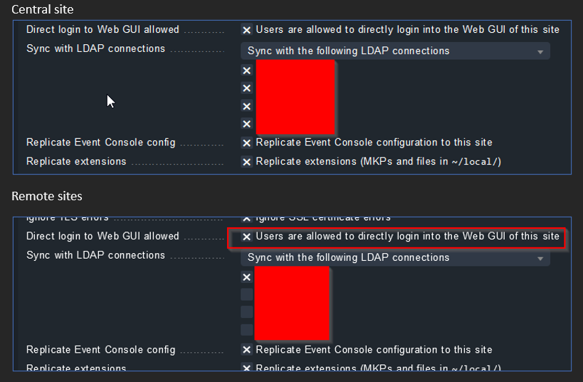 Only issue at this point is that the LDAP users don’t see any hosts/services unless I go to the user settings in WATO on the remote server and enable the option “Only show hosts and services the user is a contact for” under Personal settings. After that, the LDAP users do see the hosts and services for that site.
