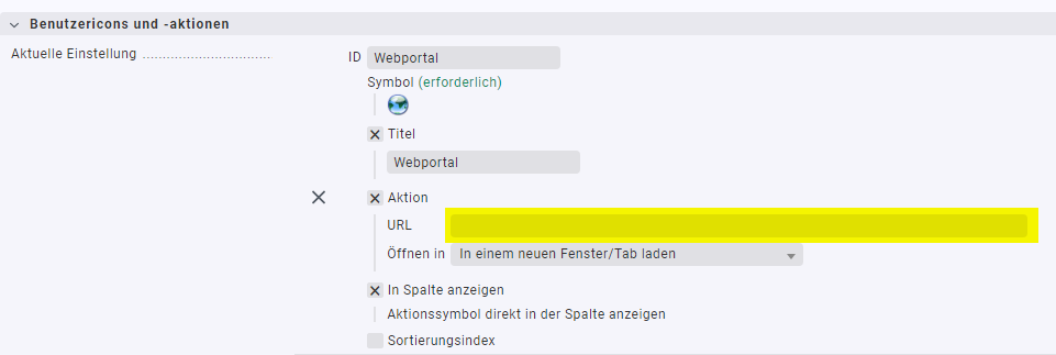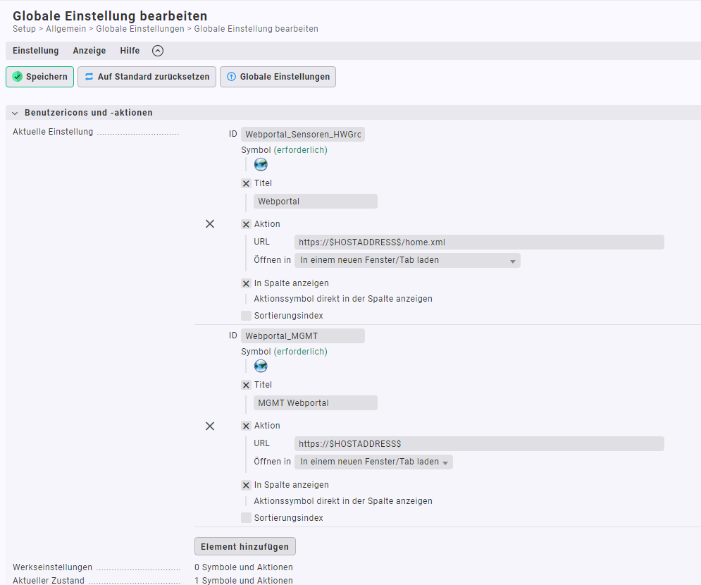 Es soll bei den Symbolen ein weiteres hinzukommen, worüber die Anwender direkt zum Webportal des Server abspringen können.
