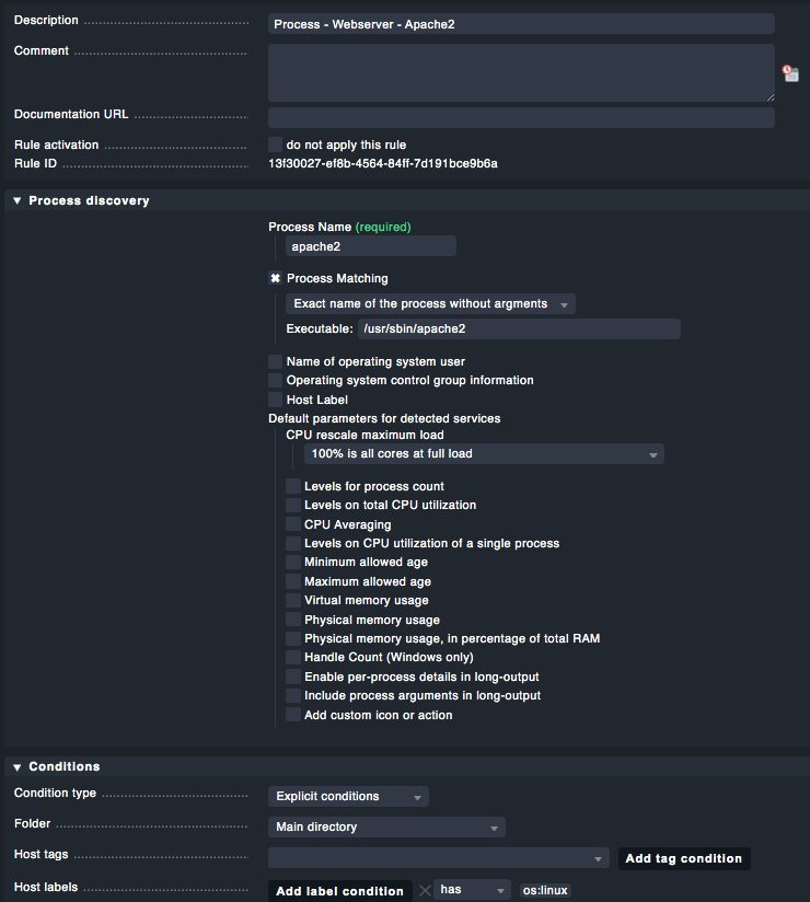 Wichtig: Hier keine weiteren Einstellungen machen, weil der Prozess so inventarisiert wird. Alles Weitere wie Schwellwerte über Regeln hinzufügen.