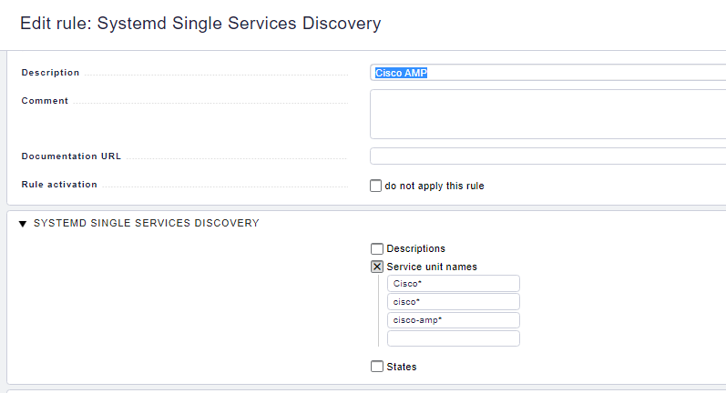 And actually now that I think about it, I’m not sure that service unit name supports wildcards or regexes, try just “cisco-amp” (I have multiple versions of software-12, software-13, etc in mine, and I’m pretty sure I would’ve wildcarded it if it worked).