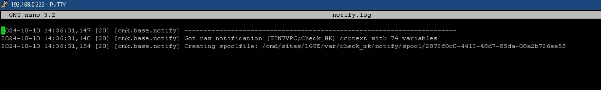 Ich habe den notify.log gelöscht und ein neues Event ausgelöst.