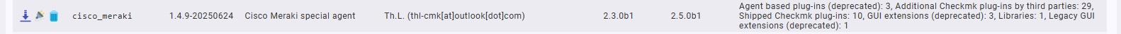 look at the forum post I have lnked above (Topic Installation) or of course directly from miy Gitlab site CheckMK / Cisco / Meraki / Cisco Meraki special agent · GitLab → Topic Download.