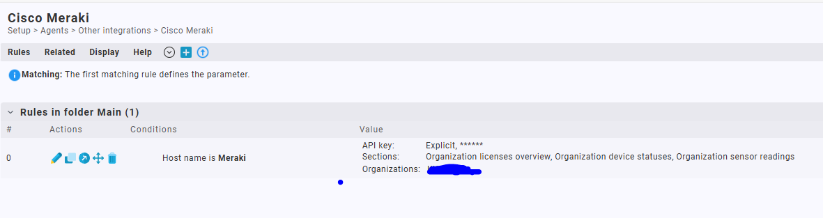 I have configured the Meraki special agent rule with the correct API and Organizational ID. The connection shows as successful but nothing is showing.
