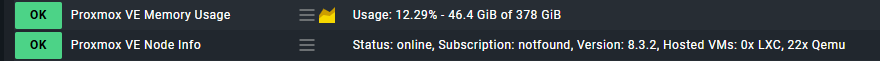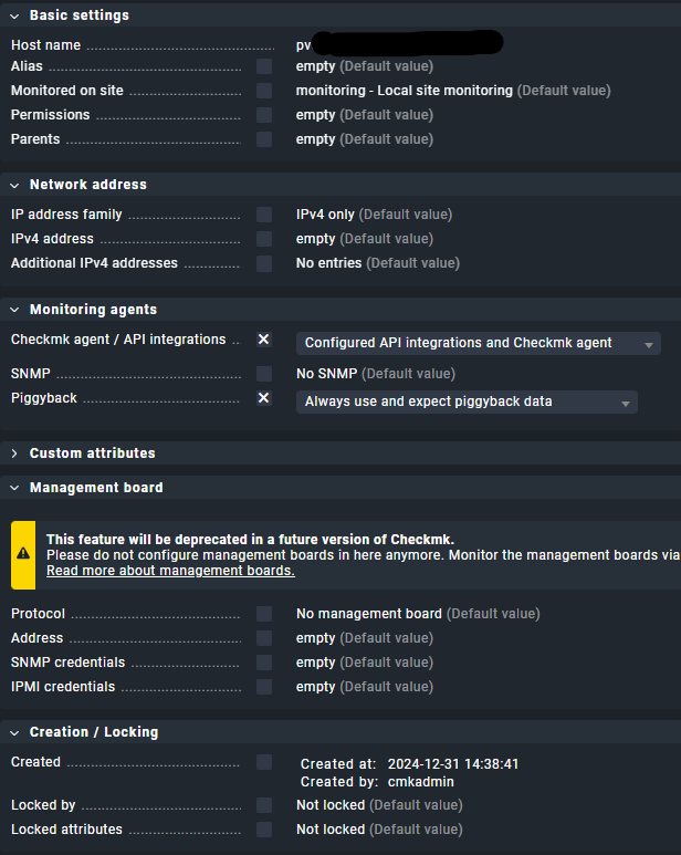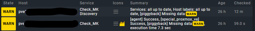 I have piggyback data coming in for my running vm’s just fine but I’m still getting a warning for the pve host check_mk service. I see the above lines in the output and wonder if it’s because it’s looking for data for the FQDN and the ip which there aren’t any hosts or vm’s in the PVE inventory that match them. The host is just the hostname in the inventory but I use FQDN in checkmk to match the valid certificate.