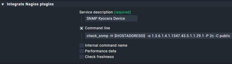 For some oids not supported in a plugin, as a workaround I used Setup > Services > Other services > Integrate Nagios plugins rules on the folder of our printers to add some snmp oid checks.
