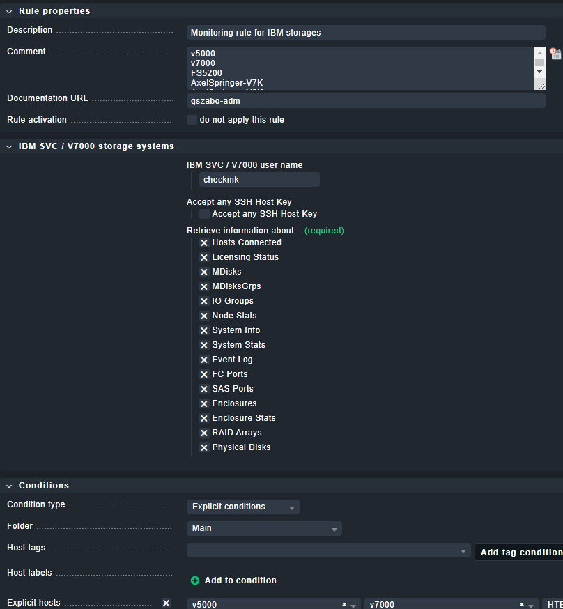 We want to monitor the actual available and used storage space on our V5000 storage system in CMK. I understand that the lsarray command in the CLI needs to be executed to retrieve the actual capacity. You can find more details here: IBM Documentation - lsarray command