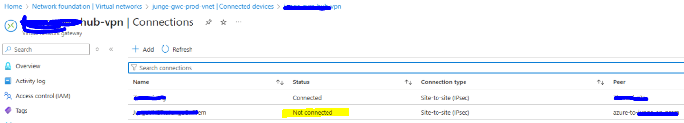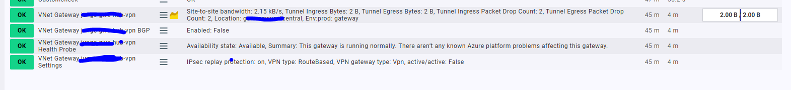 Hi, I’ve brought into monitoring a resource group which appears to successfully pick up a vpn virtual network.
