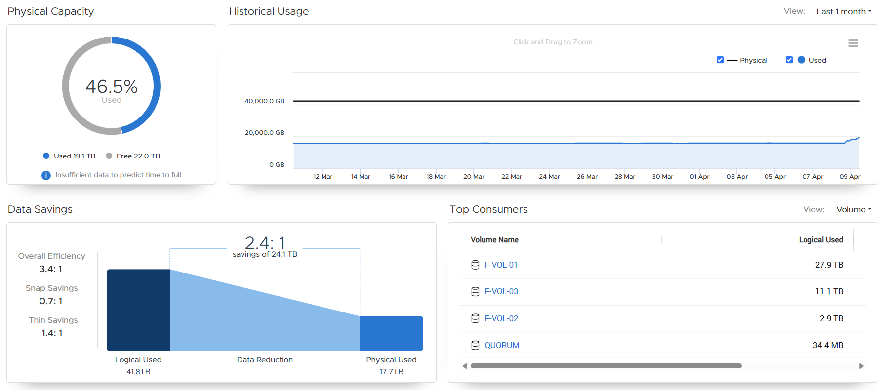 “Physical Capacity” would be great and “Data Savings” would be nice