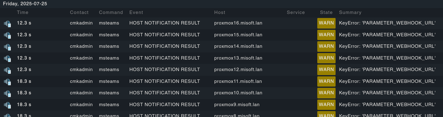 The Messages aren’t leaving the Checkmk! in Monitor–>Failed Notifications I can see them “trying” to get out to reach MS-Teams, but there is an error: