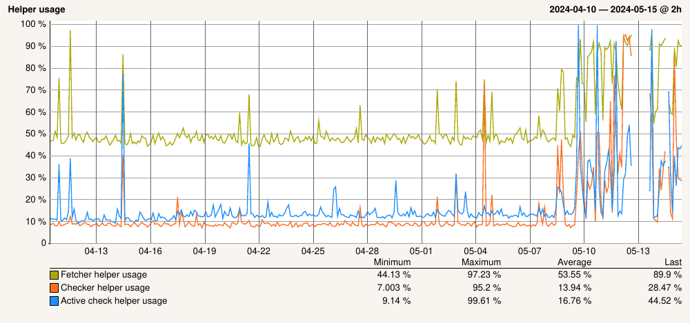 BTW, yes, that’s a huge number of fetcher processes. I do remember having configured such a high number quite a while ago in order to tackle fetcher usage issues, and the high number hadn’t been an issue with 2.2.0pXY. The current settings for this one central site are: